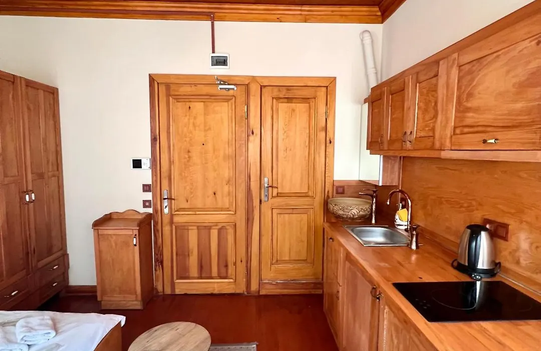 The rooms include an iron with ironing board and air conditioning, along with such modern comforts as a flat-screen TV with satellite channels. They have kitchen facilities, such as an electric kettle, a stove top, and kitchenware. Guests will make use of a hairdryer and dressing gowns in bathrooms equipped with a separate toilet and a shower.